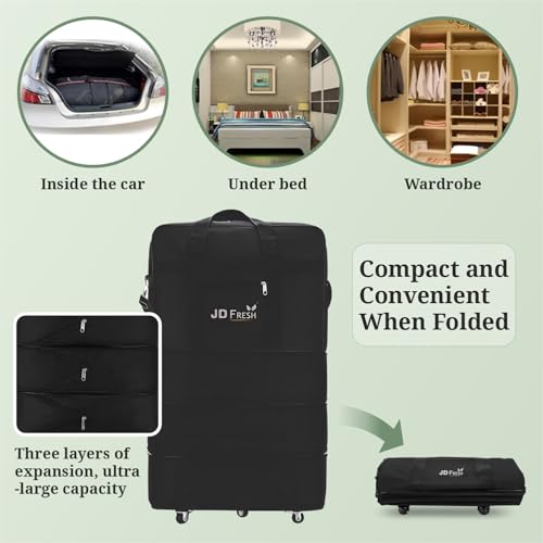 𝗠𝘂𝗹𝘁𝗶-𝗣𝘂𝗿𝗽𝗼𝘀𝗲 𝗙𝘂𝗻𝗰𝘁𝗶𝗼𝗻𝗮𝗹𝗶𝘁𝘆: Whether you’re looking for a travel duffle bag with wheels, a gym bag, or even a duffle bag with the versatility of a suitcase, this bag is your go-to. Foldable, durable, and easy to store, it meets every luggage need, from a simple travel companion to a reliable traveling bag.