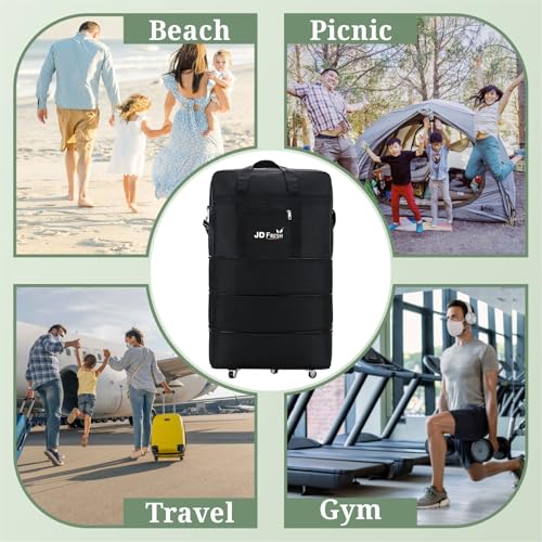 𝗠𝘂𝗹𝘁𝗶-𝗣𝘂𝗿𝗽𝗼𝘀𝗲 𝗙𝘂𝗻𝗰𝘁𝗶𝗼𝗻𝗮𝗹𝗶𝘁𝘆: Whether you’re looking for a travel duffle bag with wheels, a gym bag, or even a duffle bag with the versatility of a suitcase, this bag is your go-to. Foldable, durable, and easy to store, it meets every luggage need, from a simple travel companion to a reliable traveling bag.