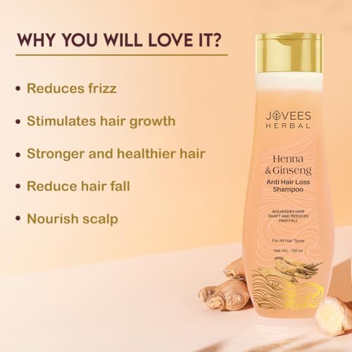 PREVENTS HAIR FALL: Amla Extract in Jovees Henna and Ginseng Anti Hair Loss Shampoo helps reduce hair fall due to its rich source of vitamin C and antioxidants. These nourish the scalp, strengthen hair follicles, and promote blood circulation, leading to healthier hair growth and minimized hair loss, ultimately improving overall hair health.