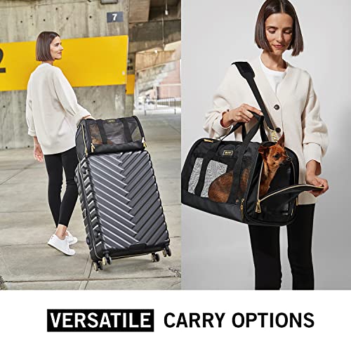 Bag’s interior includes a leash to hook to your pet’s collar, and dual vertical seatbelt loops allowing you to securely buckle the carrier into a car seat.