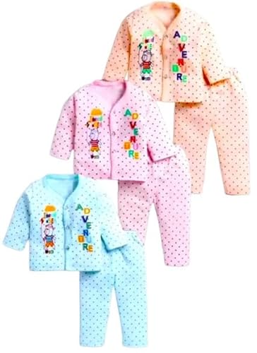 Combo Pack : Pack of 3 pieces of baby jhabla t-shirt with pyjama pants dress vest, every set has different baby prints.