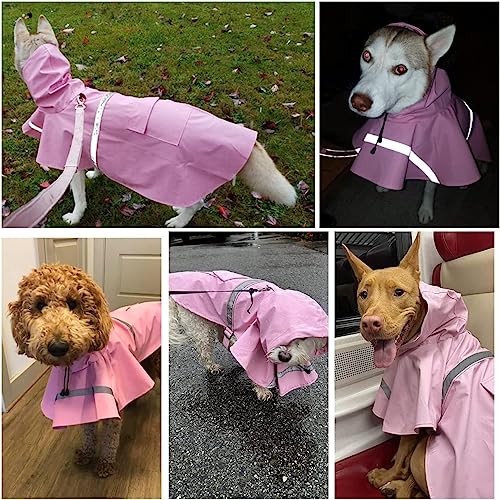 NEW DESIGN: There is a reflective type on back ensure your pets can be seen at night/in the dark. The Slicker Poncho contains 1 openings on the upper back for dog collar & harness. Dogs can carry some snacks or garbage bags inside the pocket.