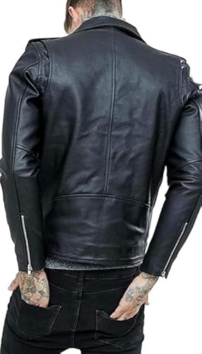 Leather Jacket For Men Biker (IN, Alpha, Large, Regular), Black