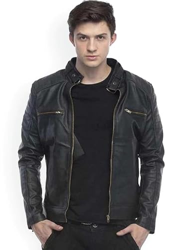 Leather Retail Mens Solid Designer Faux Leather Jacket Black(LARGE)