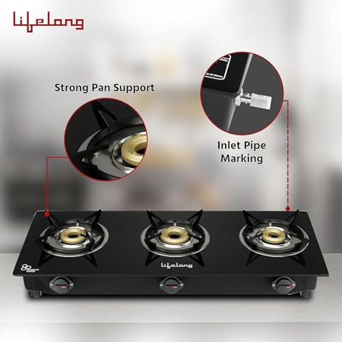 Robust and Durable Construction: The Lifelong 3 Burners Gas Stove is built with durability in focus, offering a reliable and sturdy appliance for your kitchen.