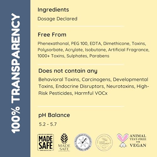 Natural & Plant-Based Formula: Our baby hair shampoo 0-5yr is MADE SAFE certified and pH balanced. This organic baby shampoo ensures no tears, offering a gentle, no tears baby shampoo experience