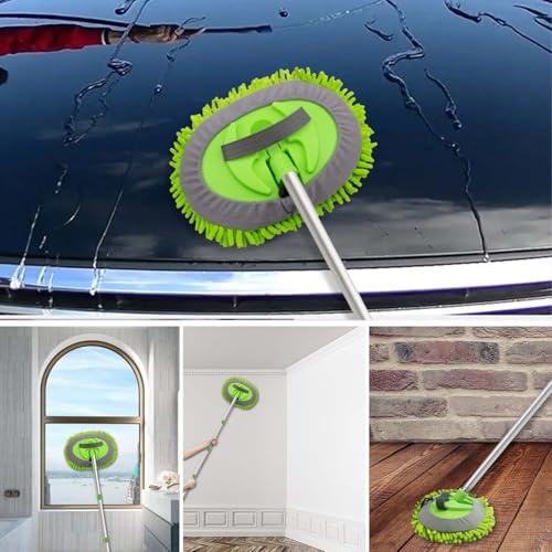 【WIDE APPLICATION】Our car wash brush offers 180° rotational cleaning and is also designed for household and office cleaning. Awesome cleaning for floors, windows, mirrors, and dusting ceiling fans, outdoor sheds, boats, kids slides. One car cleaning kit can use wet or dry to solve your different cleaning needs!