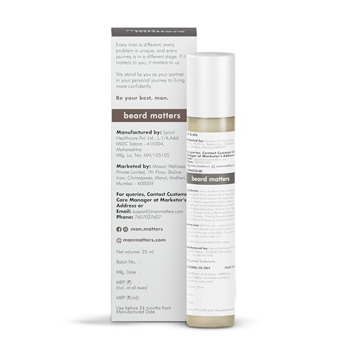 Man Matters BeardGro Serum Roll On 25ml | 4% Anagain, 2% Aminexil & 1% Rosemary | For Stronger, Fuller & Thicker Beard | Solves Uneven & Patchy Beard | Lightweight, Fast Absorption