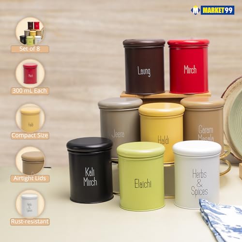 🌈 Set of 8 Multicolor Jars: Includes eight 300 ml jars in vibrant colors to organize your spices beautifully.
