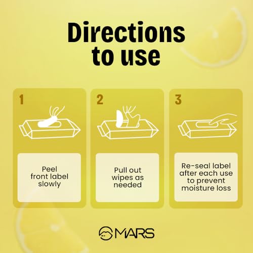 MARS Refreshing Wet Wipes for Face| Facial Cleansing | Refreshing & Skin Hydration| Soothing for skin | pH Balance & Alcohol Free | Nourishing with Fruit extract | 25 Wipes | Lemon