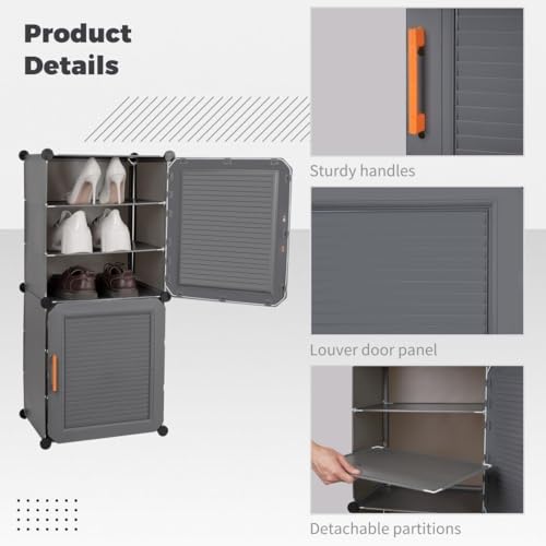 【STRONG STORAGE ABILITY】: 10lbs load-bearing for each cube, this shoe rack can hold shoes from athletic shoes, high heels, or work boots to meet your long-term storage needs; dust-proof PP Plastic Doors with metal ring design for easy opening and closing.