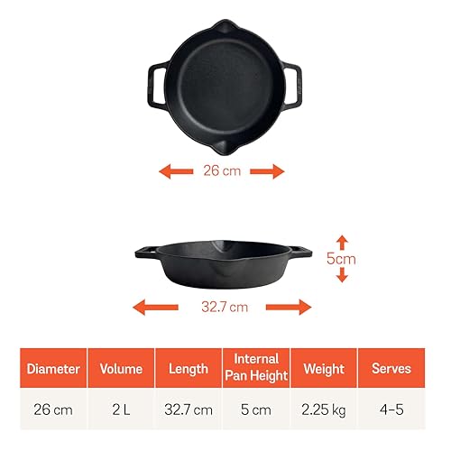 🥘 Totally Toxin-free – No ENAMEL, No CHEMICAL coating on inner or outer surface. Pre-seasoned with 100% Vegetable Oil. Regular seasoning creates a chemical free natural non-stick surface for low oil cooking