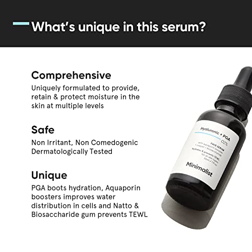 CLEAN & TRANSPARENT BEAUTY: This serum is (i) Fragrance-free (ii) Silicones-free (iii) Sulfates-free (iv) Parabens-free (v) Essential Oils-free and (vi) Dyes-free. Also, it is non-comedogenic, oil-free, and hypoallergenic. Formulated at pH 6.0 to 7.0 with Hyaluronic acid sourced from Royal DSM, Netherlands; a global science-based company.