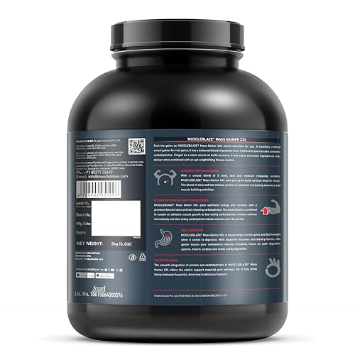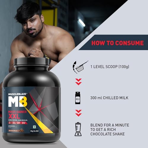 HIGH CALORIE GAINING FORMULA: MuscleBlaze Mass Gainer XXL is a potent supplement that when used in conjunction with training helps gym-goers bulk up. It is a high calorie-gaining formula which offers a sizable 1361 kcal and 76.5 g protein from three servings with milk