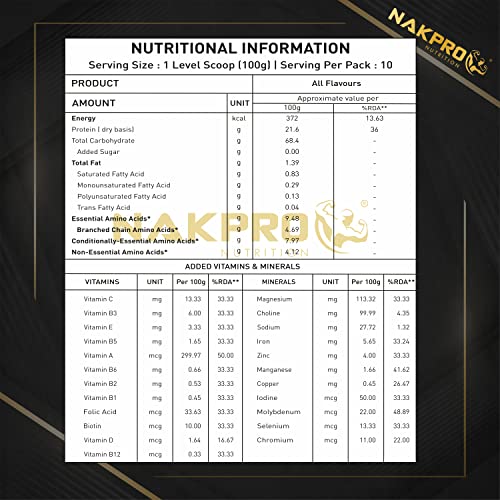 Nakpro Gold Mass Gainer Powder 1 Kg, Chocolate| Lean Muscle Whey Protein Mass Gainer | 21g Protein, 68g Carb, 372 Calories Per Scoop for Muscle Support & Muscle Mass Gain