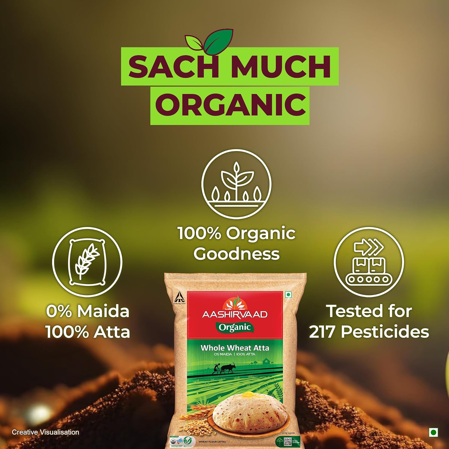 AASHIRVAAD ORGANIC ATTA: It is a certified organic product, grown with with zero chemicals, pesticides, or adulteration