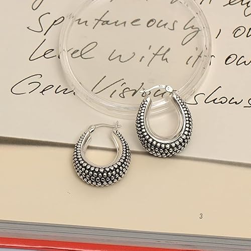 Nora Nico 925 Sterling Silver Jewelry Oval Antique Click-Top Hoop Earrings for Women 25MM- BIS Hallmarked