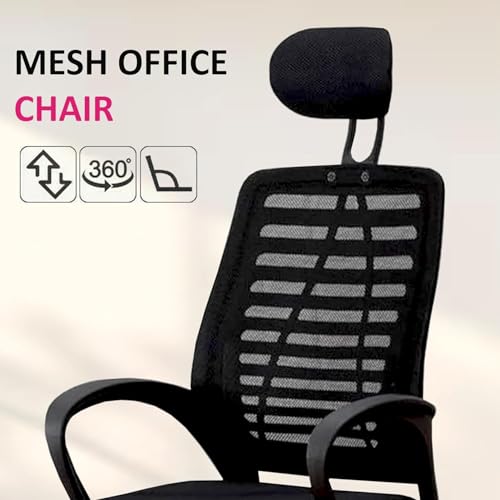 NORMAN JR,Mesh Office Desk Chair,Rocking Chairs Ergonomic Computer Chair Adjustable High with Headrest and Comfortable Armrest Swivel Chair - Black & Black Handle