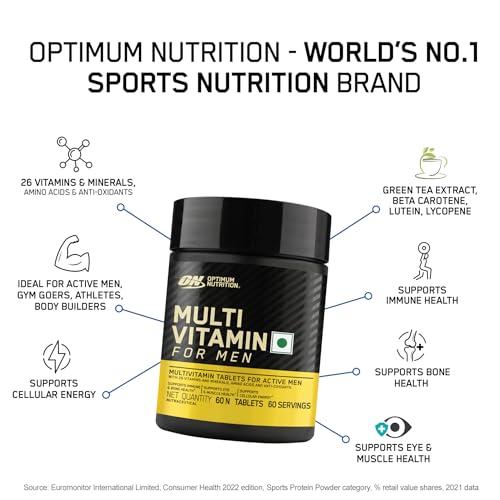 What Is It- From World’s #1 Sports Nutrition Brand Optimum Nutrition, Multivitamin for MEN. 26 Vitamins & Minerals, Amino Acids & Anti-Oxidants (Green Tea Extract, Beta Carotene, Lutein, Lycopene).