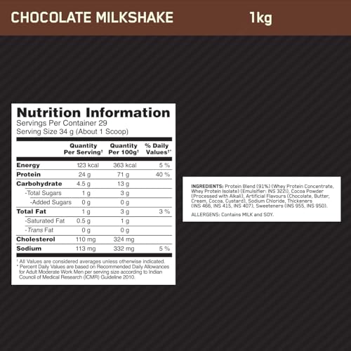What it contains: 24 gm Protein, 5 gm BCAAs, only 1 gm of Sugar and 1 gm of Fat per serve of 34 gm