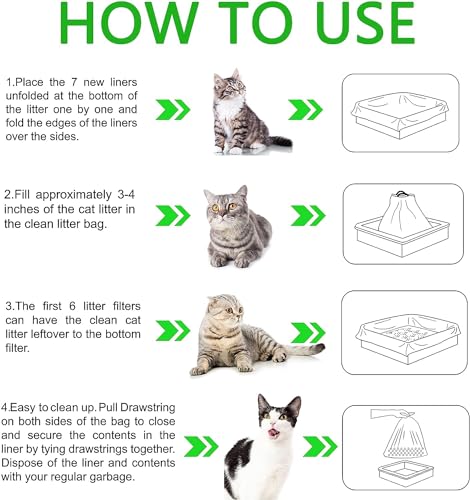 FILTER TYPE – Comes with 6 pcs liners sifting will sieve the cat litter quickly, and 1 pc Non-perforated bag which prevents urine leakage and litter from falling to the bottom. Working together to quick clean cat litter cluster