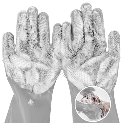 MULTIPLE USAGES : Suitable for all kinds of furry pets, such as cats, dogs, and rabbits. In addition to pets, this bathing scrubber glove can also be used to clean tableware, furniture, cars, clothes, and other items.