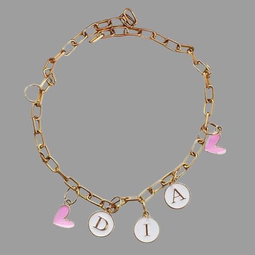 This Charm Bracelet Includes: Material: Metal Chain With Enamel Charm | Personalized it with the recipient\’s name. (Max -6 Letters)
