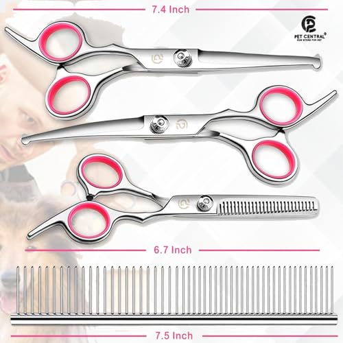 [PREMIUM STAINLESS STEEL CONSTRUCTION] – The Pet Central Dog Grooming Kit is crafted from 4CR titanium-coated stainless steel, offering exceptional sharpness and durability. Designed to cut smoothly without pulling hair, this pet grooming kit for dogs ensures a painless grooming experience for your pet.