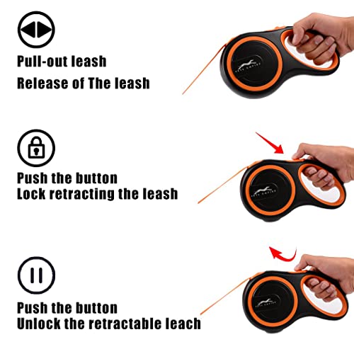 Pets Empire Retractable Dog Leash, 8m/16ft Walking Jogging Training Leash with Polyester Tape for Medium to Large Dog up to 50kg/110lbs, with Hand Grip and One Button Brake & Lock Orange Color