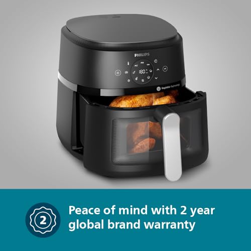 PHILIPS Air Fryer NA231/00 with touch panel, uses up to 90% less fat, 1700W, 6.2 Liter, with Rapid Air Technology (Black),Cooking window, Extra Large