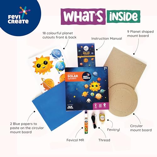 The kit’s cosmic contents include Fevicol MR, Fevicryl 3D outliners, planet cut outs, mount boards, instruction manual and more.