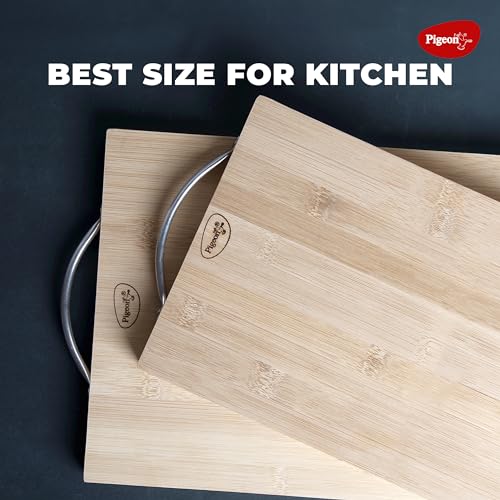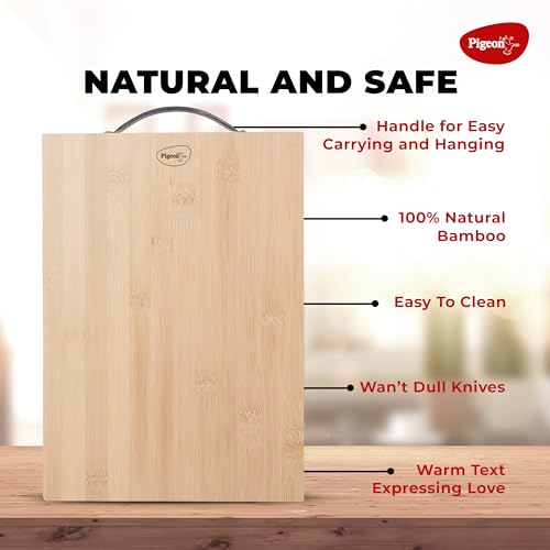 REVERSIBLE DESIGN – Stylish reversible and ultra-thick design makes bamboo chopping board for kitchen a must for your cooking tasks. This reversible cutting board design offers versatility that allows you to cut food on one both the surface. HANDLE DESIGN: This wooden chopping block has a handle which makes it easy to take and carry, and meanwhile you can hang the board on the kitchen walls.