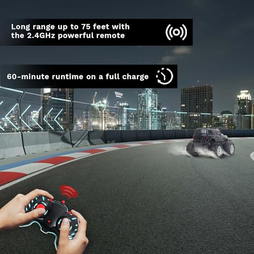 2.4GHz Remote: Range over 75 feet;Running Time: Over 60 minutes