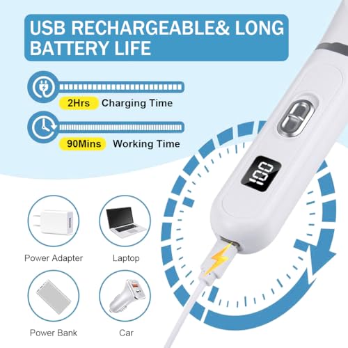 CONVENIENT USB RECHARGEABLE: This Dog Hair Trimmer features a 600mAh battery supporting USB charging through a power bank or adapter. The cordless design offers greater flexibility, and the LCD display shows speed and battery capacity. Enjoy hassle-free grooming purchase today and keep your trimmer ready at all times!