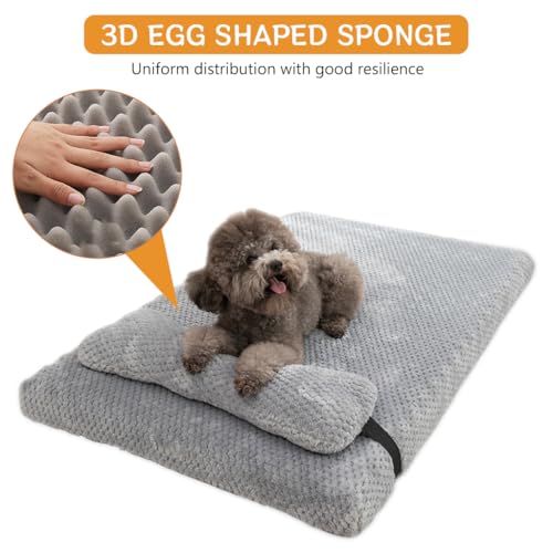 ADDED COMFORT WITH PILLOW: Equipped with a long plush pillow that\’s easily fixed onto the mat via an elastic band, this bed for dog offers extra neck and head support. This feature enhances your pet\’s overall relaxation and comfort.