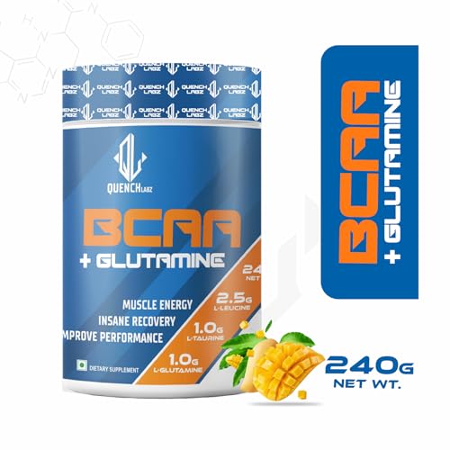 BCAA Formula – QUENCHLABZ BCAA + Glutamine provides 2.5g L-Leucine, 1.25g L-Valine, 1.25g L-Isoleucine, plus 1g L-Glutamine & 1g L-Taurine per scoop for optimal muscle recovery.