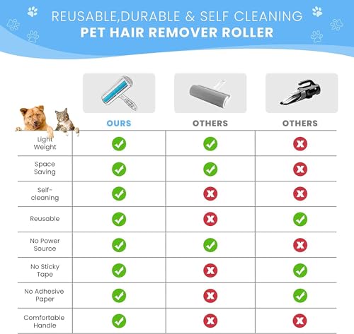 [REUSABLE PET HAIR REMOVER] Simply roll back and forth on the furniture surface, pick up the pet hair, open the lid and you will find the dustbin is full of pet hair and the furniture is clean like before. Empty the waste compartment and dispose the pet hair in trash. With 100% reusable pet hair lint roller, no longer waste money on refills or batteries. Cost-effective product for pet hair removal.