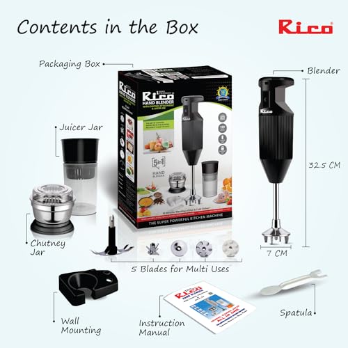 Rico hand blender comes with ISI mark and the appliance is efficient and effective at its job of blending and mixing ingredients whether you are making meringues, mayonnaise, baby food, salads, omelette mixes or batters for baking.