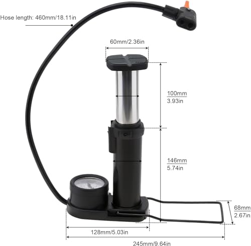 【COMPACT AND LIGHTWEIGHT】This mini car tyre inflator pump foot pump is Made from aluminum alloy with durable, it\’s mini-sized and as tall as a drink bottle. After shrinkage, it is more compact. It can be attached to the bike frame under the water bottle cage with the included mounting bracket.