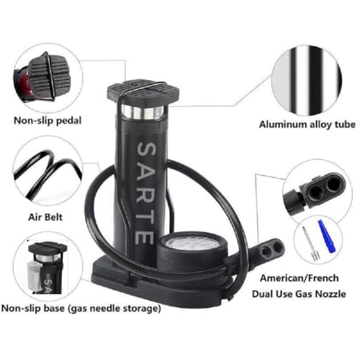 【PRESTAL AND SCHRADER COMPATIBLE】This mini portable bike pump work perfectly with both Presta and Schrader. With ball needle and balloon needle,which can easily inflate some children\’s toys, bicycles and ball.