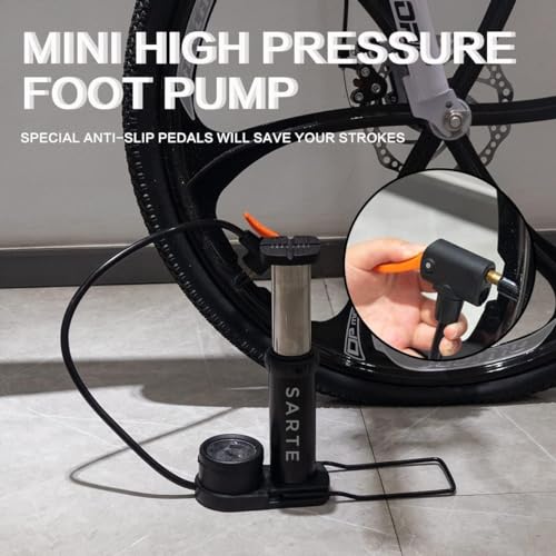 【HAND & FOOT ACTIVATED BIKE PUMP】Hand & foot activated tire pump makes pumping much faster and easier tyre inflator for car.so that you riding without worries.