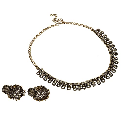 šćExcellent Conventional ElegancećSavor the classic charm of our expertly made Traditional Oxidised Antique Gold Necklace with Earring for ladies and girls. This sophisticated outfit is the perfect addition to religious and Indian celebrations because it goes well with traditional sarees. This gorgeous item is a perfect way to embrace your rich cultural history. It goes well with silk sarees, half sarees, and other traditional Indian clothing.
