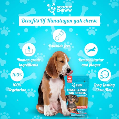 100% Natural Dog Treats: Scooby Cheww Himalayan Yak Cheese Treats are 100% vegetarian and grain/gluten-free, providing balanced nutrition for your dog. Made from pure Yak milk, lime juice, and salt, with no chemicals, preservatives, or additives, making them the perfect healthy dog snacks.