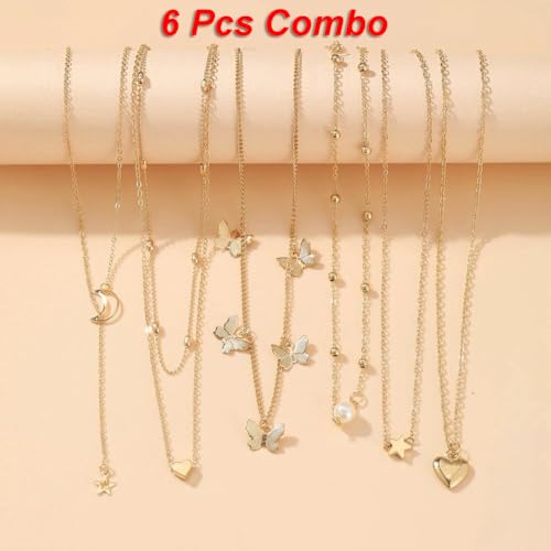 Necklace Combo: Package contains 6 Necklaces in different designs, Each necklace has its own style, Simple and beautiful, this stylish necklace will show your nobility.