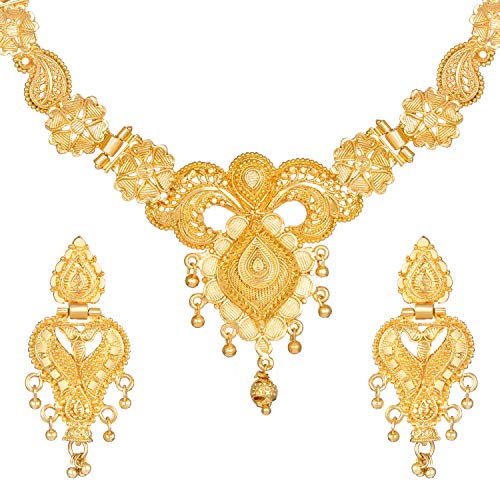 Latest design traditional stylish jewellery set for women; Gold plated party wear necklace set for women