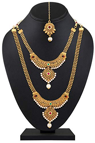 Combo of one short and one long necklace. You can wear both long and short necklace together Or You can also wear long necklace or short necklace separately.