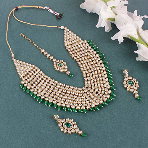 Shining Diva Fashion Latest Kundan Design Bridal Necklace Set for Women Wedding Traditional Gold Plated Jewellery Set for Women (Green)