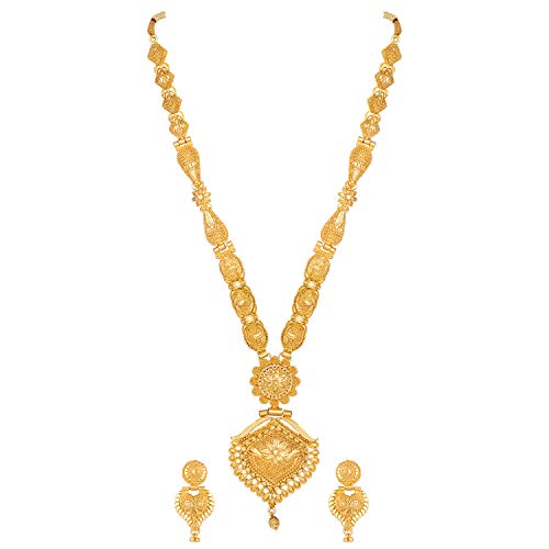 Shining Diva Fashion Latest Long Design Necklace Set For Women Traditional One Gram Gold Plated Jewellery Set for Women (Golden) (11508s)