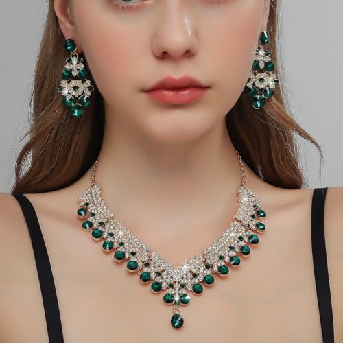 Shining Diva Fashion Latest Stylish Design Fancy Crystal Necklace Jewellery Set for Women (16163s)(Green)