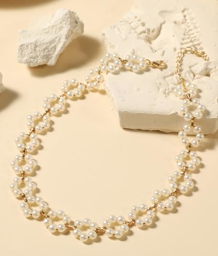 Stylish gold plated pearl chain necklace for women and girls
